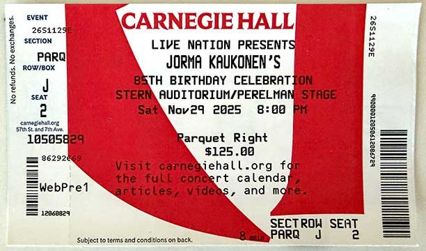 Jorma’s 85th Birthday Celebration Tour plus special guests GE Smith, Larry Campbell, Teresa Williams, Steve Earle, Justin Guip & Ross Garren
